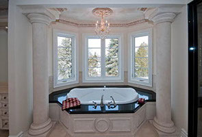 The Master Suite features a boudoir, cast stone gas fireplace, a luxurious pampering 7 pc his and hers spa ensuite and a walk in dressing room that boasts a granite centre island, custom cabinetry and shelving. The other large family bedrooms feature private ensuites and walk in closets with custom cabinetry.